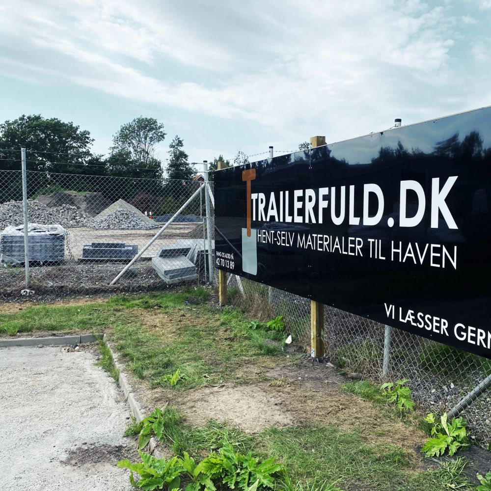 Hos Trailerfuld på Sagavej 15 i Gistrup, kan du billigt læsse din trailer (eller låne en gratis!) med et bredt sortiment af granitskærver, stenmel, støbemix, muld, gødning, stabilgrus, søsten, cement, topdressing, kompost, spagnum, sand og dækbark. Du kører blot til pladsen, læsser din trailer og betaler med mobilepay.